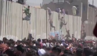 The Taliban can be seen on camera shooting at Afghans trying to scale the wall outside the Kabul airport.