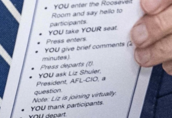 How humiliating and hilarious. Addled President Biden inadvertently held up a detailed cheat sheet prepared by his staff instructing the…