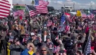 The Freedom Convoy of truckers sings "Amazing Grace" in California before heading to Washington, D.C. in protest of President Biden's…
