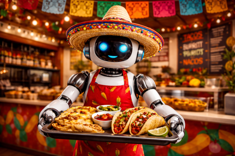 That’s right. I tried that once—some Mexican place, I forget the name. I ordered a Chalupa or a Gordita. The little AI robot had a sombrero on its head. Rolled up like R2-D2.