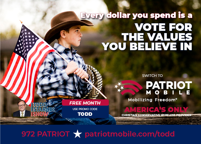 That’s PatriotMobile.com/TODD or call 972-PATRIOT and make the switch today.