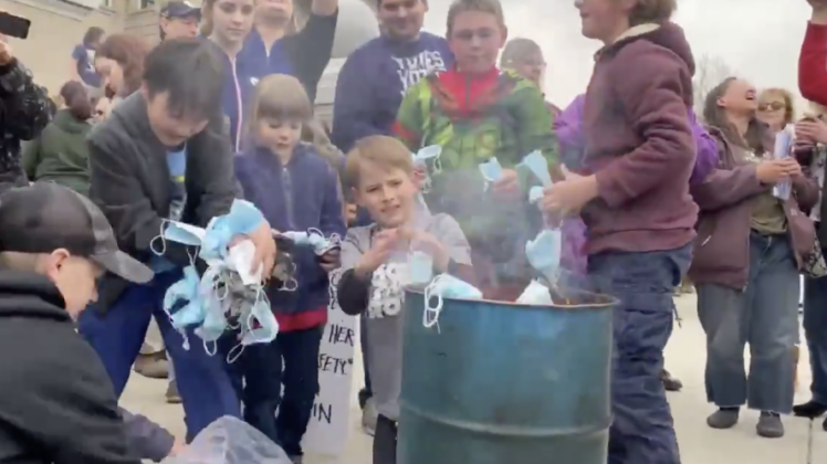 Parents encouraging kids to burn masks on Idaho Capitol steps pic.twitter.com/VOYfOYqwwt